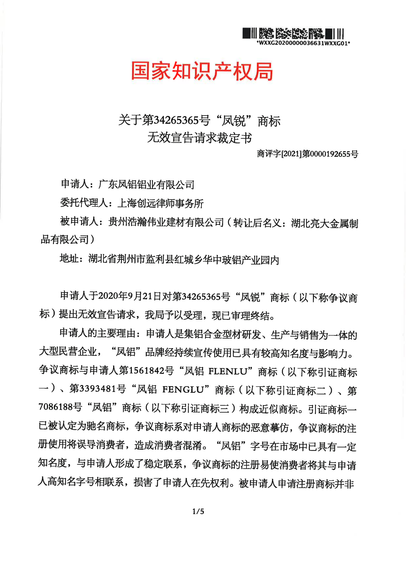 保定辉知队 | 国家知识产权局:“凤锐”商标无效