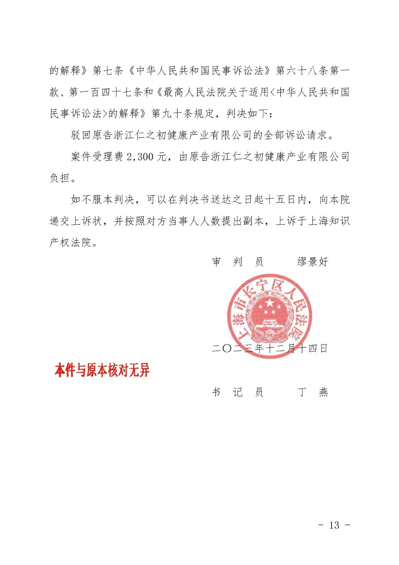 保定辉知胜诉佳讯 | “仁之初健康”著作权及不正当竞争纠纷案,法院:驳回全部诉讼请求!