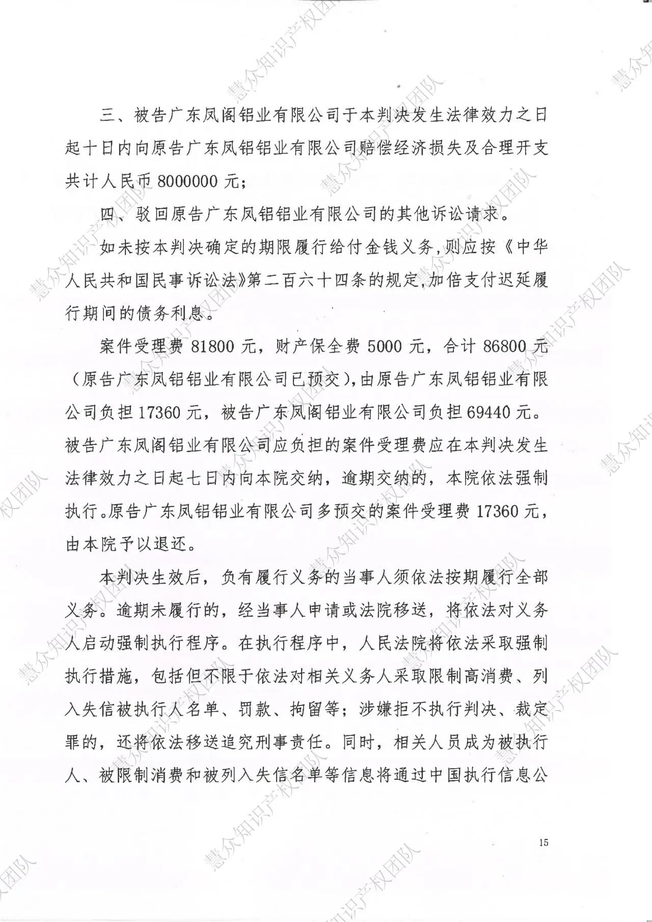 保定判赔800万!辉知队代理“凤铝”商标维权案胜诉